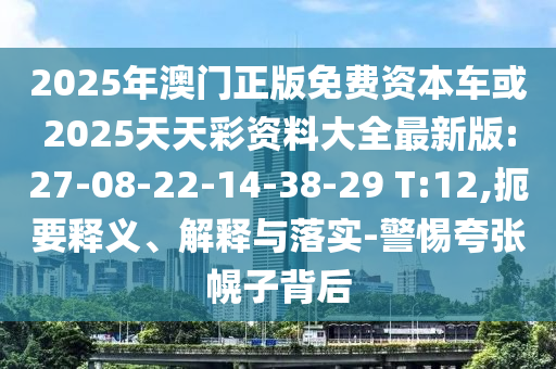 2025年澳門正版免費資本車或2025天天彩資料大全最新版:27-08-22-14-38-29 T:12,扼要釋義、解釋與落實-警惕夸張幌子背后