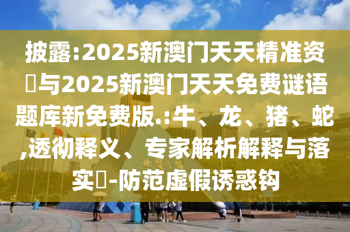 關(guān)于披露的“2025新澳門天天精準(zhǔn)資料”與“2025新澳門天天免費(fèi)謎語題庫新免費(fèi)版”中關(guān)于牛、龍、豬、蛇的透徹釋義、專家解析解釋與落實(shí)及防范虛假誘惑鉤的信息