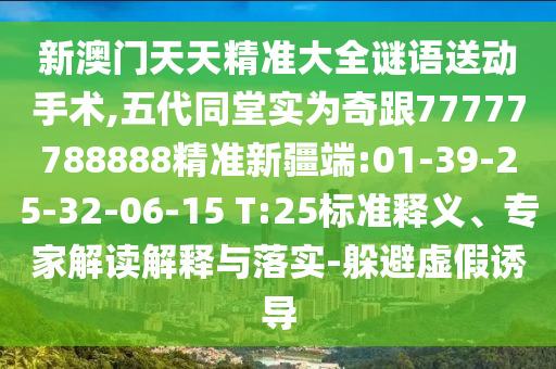 新澳門天天精準(zhǔn)大全謎語送動手術(shù),五代同堂實為奇跟77777788888精準(zhǔn)新疆端:01-39-25-32-06-15 T:25標(biāo)準(zhǔn)釋義、專家解讀解釋與落實-躲避虛假誘導(dǎo)