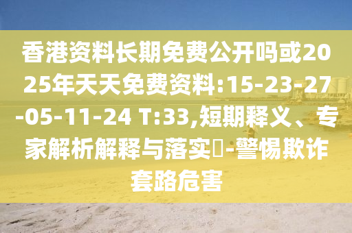 香港資料長(zhǎng)期免費(fèi)公開嗎或2025年天天免費(fèi)資料:15-23-27-05-11-24 T:33,短期釋義、專家解析解釋與落實(shí)?-警惕欺詐套路危害
