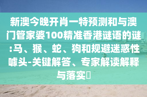 新澳今晚開肖一特預測和與澳門管家婆100精準香港謎語的謎:馬、猴、蛇、狗和規(guī)避迷惑性噱頭-關鍵解答、專家解讀解釋與落實?