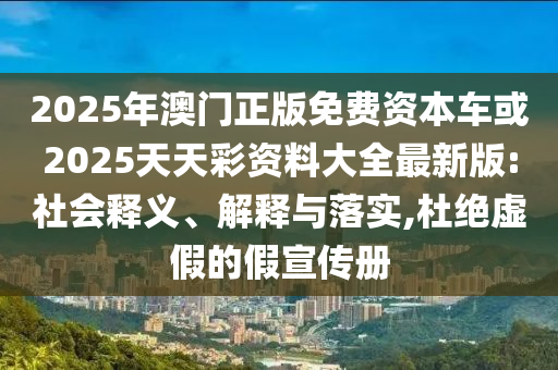 2025年澳門正版免費(fèi)資本車或2025天天彩資料大全最新版:社會(huì)釋義、解釋與落實(shí),杜絕虛假的假宣傳冊