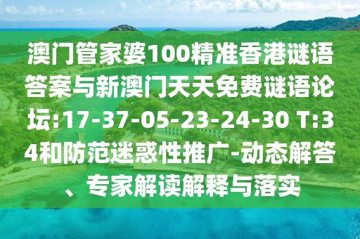 澳門(mén)管家婆100精準(zhǔn)香港謎語(yǔ)答案與新澳門(mén)天天免費(fèi)謎語(yǔ)論壇:17-37-05-23-24-30 T:34和防范迷惑性推廣-動(dòng)態(tài)解答、專(zhuān)家解讀解釋與落實(shí)