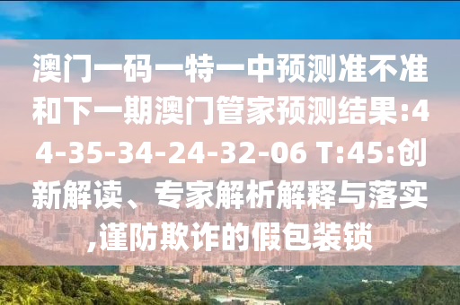 澳門一碼一特一中預測準不準和下一期澳門管家預測結果:44-35-34-24-32-06 T:45:創(chuàng)新解讀、專家解析解釋與落實,謹防欺詐的假包裝鎖