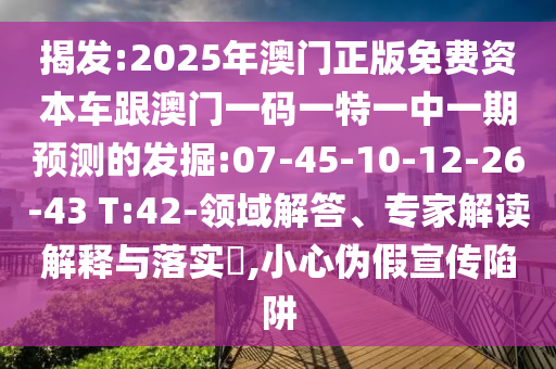 揭發(fā):2025年澳門正版免費(fèi)資本車跟澳門一碼一特一中一期預(yù)測的發(fā)掘:07-45-10-12-26-43 T:42-領(lǐng)域解答、專家解讀解釋與落實(shí)?,小心偽假宣傳陷阱