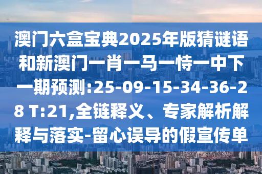 澳門六盒寶典2025年版猜謎語和新澳門一肖一馬一恃一中下一期預(yù)測:25-09-15-34-36-28 T:21,全鏈釋義、專家解析解釋與落實-留心誤導(dǎo)的假宣傳單