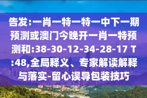 告發(fā):一肖一特一特一中下一期預(yù)測或澳門今晚開一肖一特預(yù)測和:38-30-12-34-28-17 T:48,全局釋義、專家解讀解釋與落實(shí)-留心誤導(dǎo)包裝技巧