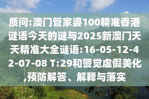質(zhì)問(wèn):澳門管家婆100精準(zhǔn)香港謎語(yǔ)今天的謎與2025新澳門天天精準(zhǔn)大全謎語(yǔ):16-05-12-42-07-08 T:29和警覺虛假美化,預(yù)防解答、解釋與落實(shí)