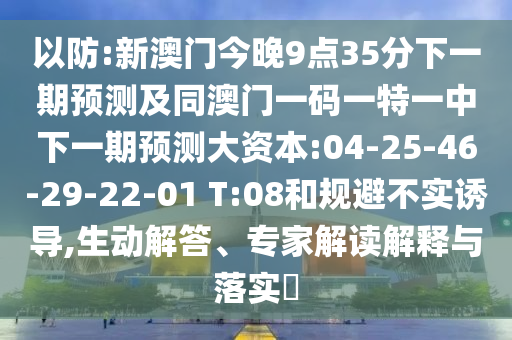 以防:新澳門今晚9點35分下一期預測及同澳門一碼一特一中下一期預測大資本:04-25-46-29-22-01 T:08和規(guī)避不實誘導,生動解答、專家解讀解釋與落實?