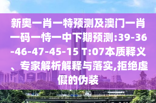 新奧一肖一特預(yù)測及澳門一肖一碼一恃一中下期預(yù)測:39-36-46-47-45-15 T:07的本質(zhì)釋義、專家解析解釋與落實