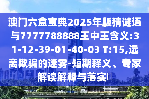 澳門六盒寶典2025年版猜謎語與7777788888王中王含義:31-12-39-01-40-03 T:15,遠(yuǎn)離欺騙的迷霧-短期釋義、專家解讀解釋與落實(shí)?