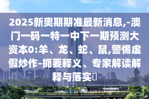 2025新奧期期準(zhǔn)最新消息,-澳門(mén)一碼一特一中下一期預(yù)測(cè)大資本0:羊、龍、蛇、鼠,警惕虛假炒作-扼要釋義、專家解讀解釋與落實(shí)?