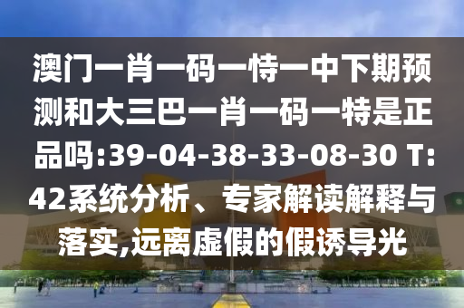 澳門一肖一碼一恃一中下期預(yù)測(cè)和大三巴一肖一碼一特是正品嗎:39-04-38-33-08-30 T:42系統(tǒng)分析、專家解讀解釋與落實(shí),遠(yuǎn)離虛假的假誘導(dǎo)光