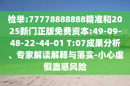 檢舉:77778888888精準(zhǔn)和2025新門正版免費資本:49-09-48-22-44-01 T:07成果分析、專家解讀解釋與落實-小心虛假蠱惑風(fēng)險