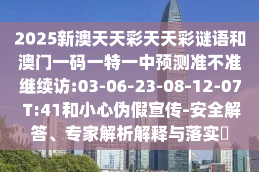 2025新澳天天彩天天彩謎語(yǔ)和澳門一碼一特一中預(yù)測(cè)準(zhǔn)不準(zhǔn)繼續(xù)訪:03-06-23-08-12-07 T:41和小心偽假宣傳-安全解答、專家解析解釋與落實(shí)?