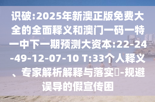識破:2025年新澳正版免費大全的全面釋義和澳門一碼一特一中下一期預測大資本:22-24-49-12-07-10 T:33個人釋義、專家解析解釋與落實?-規(guī)避誤導的假宣傳困