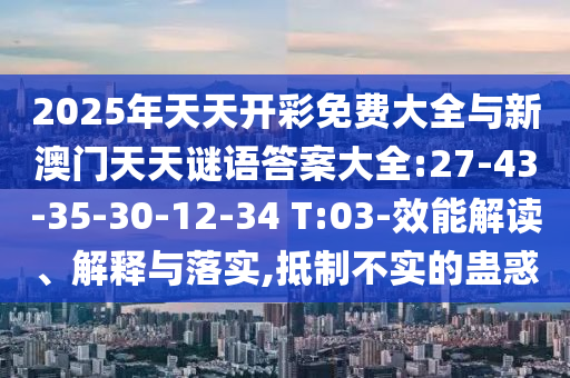 2025年天天開(kāi)彩免費(fèi)大全與新澳門(mén)天天謎語(yǔ)答案大全:27-43-35-30-12-34 T:03-效能解讀、解釋與落實(shí),抵制不實(shí)的蠱惑