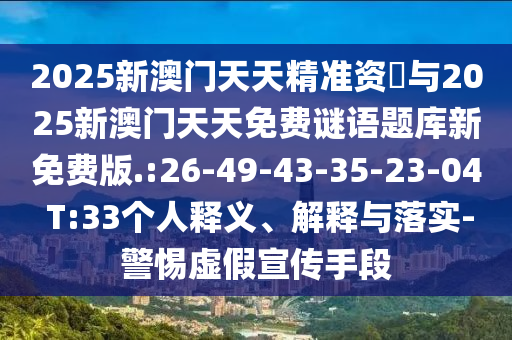 2025新澳門天天精準資枓與2025新澳門天天免費謎語題庫新免費版.:26-49-43-35-23-04 T:33個人釋義、解釋與落實-警惕虛假宣傳手段