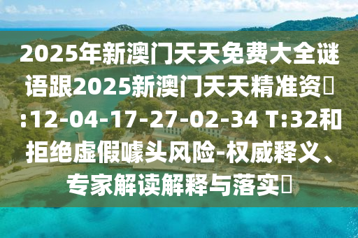 2025年新澳門天天免費(fèi)大全謎語(yǔ)跟2025新澳門天天精準(zhǔn)資枓:12-04-17-27-02-34 T:32和拒絕虛假噱頭風(fēng)險(xiǎn)-權(quán)威釋義、專家解讀解釋與落實(shí)?