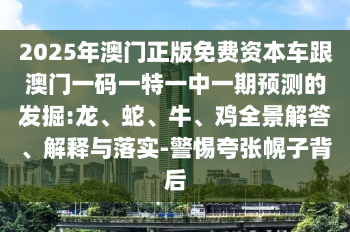 2025年澳門正版免費資本車跟澳門一碼一特一中一期預測的發(fā)掘:龍、蛇、牛、雞全景解答、解釋與落實-警惕夸張幌子背后