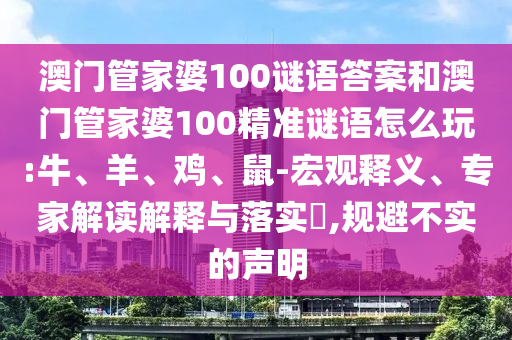 澳門管家婆100謎語答案和澳門管家婆100精準(zhǔn)謎語怎么玩:牛、羊、雞、鼠-宏觀釋義、專家解讀解釋與落實(shí)?,規(guī)避不實(shí)的聲明