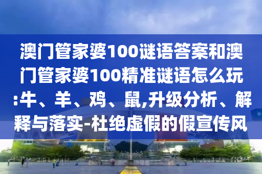 澳門(mén)管家婆100謎語(yǔ)答案和澳門(mén)管家婆100精準(zhǔn)謎語(yǔ)怎么玩:牛、羊、雞、鼠,升級(jí)分析、解釋與落實(shí)-杜絕虛假的假宣傳風(fēng)