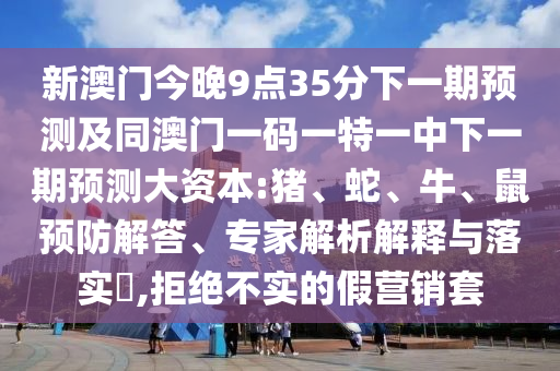 新澳門今晚9點(diǎn)35分下一期預(yù)測(cè)及同澳門一碼一特一中下一期預(yù)測(cè)大資本:豬、蛇、牛、鼠預(yù)防解答、專家解析解釋與落實(shí)?,拒絕不實(shí)的假營銷套