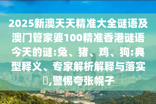2025新澳天天精準大全謎語及澳門管家婆100精準香港謎語今天的謎:兔、豬、雞、狗:典型釋義、專家解析解釋與落實?,警惕夸張幌子