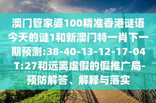 澳門管家婆100精準(zhǔn)香港謎語今天的謎1和新澳門特一肖下一期預(yù)測:38-40-13-12-17-04 T:27:預(yù)防解答、解釋與落實