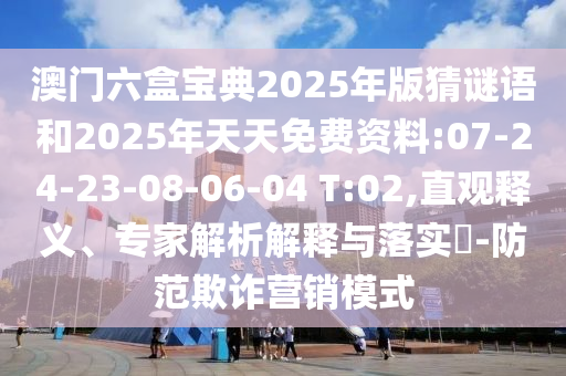 澳門六盒寶典2025年版猜謎語和2025年天天免費資料:07-24-23-08-06-04 T:02,直觀釋義、專家解析解釋與落實?-防范欺詐營銷模式