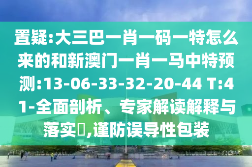 置疑:大三巴一肖一碼一特怎么來的和新澳門一肖一馬中特預(yù)測:13-06-33-32-20-44 T:41-全面剖析、專家解讀解釋與落實?,謹(jǐn)防誤導(dǎo)性包裝