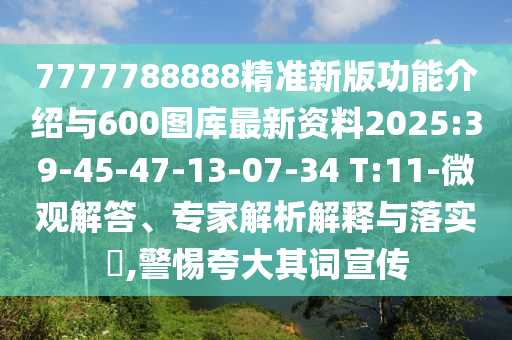 7777788888精準(zhǔn)新版功能介紹與600圖庫最新資料2025:39-45-47-13-07-34 T:11-微觀解答、專家解析解釋與落實(shí)?,警惕夸大其詞宣傳