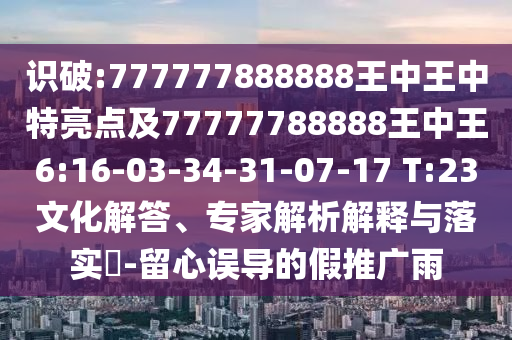 識(shí)破:777777888888王中王中特亮點(diǎn)及77777788888王中王6:16-03-34-31-07-17 T:23文化解答、專家解析解釋與落實(shí)?-留心誤導(dǎo)的假推廣雨