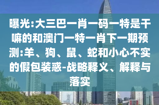 曝光:大三巴一肖一碼一特是干嘛的和澳門一特一肖下一期預(yù)測:羊、狗、鼠、蛇和小心不實的假包裝惑-戰(zhàn)略釋義、解釋與落實