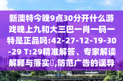 新澳特今晚9點(diǎn)30分開(kāi)什么游戲晚上九和大三巴一肖一碼一特是正品嗎:42-27-12-19-30-29 T:29的精準(zhǔn)解答、專(zhuān)家解讀解釋與落實(shí)?