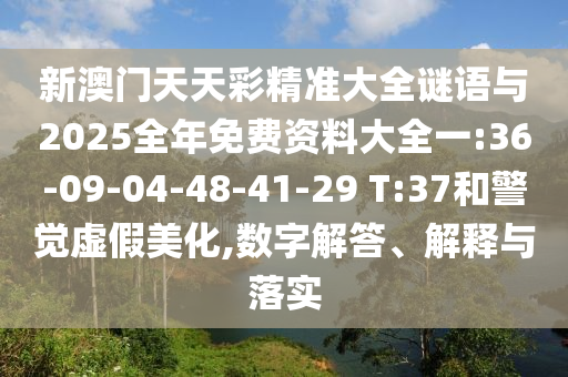 摘要:,,本摘要提供關(guān)于新澳門天天彩精準(zhǔn)大全謎語(yǔ)與2025全年免費(fèi)資料的內(nèi)容。其中包括特定數(shù)字組合如36-09-04-48-41-29以及T:37的解答與解釋。提醒公眾警覺(jué)虛假美化的信息,強(qiáng)調(diào)落實(shí)防范措施的重要性。文章內(nèi)容旨在提供準(zhǔn)確的數(shù)字解答,并提醒公眾保持警惕,避免受到誤導(dǎo)。