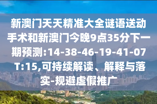 新澳門天天精準(zhǔn)大全謎語送動(dòng)手術(shù)和新澳門今晚9點(diǎn)35分下一期預(yù)測(cè):14-38-46-19-41-07 T:15,可持續(xù)解讀、解釋與落實(shí)-規(guī)避虛假推廣