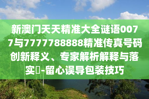 關(guān)于新澳門(mén)天天精準(zhǔn)大全謎語(yǔ)0077與7777788888精準(zhǔn)傳真號(hào)碼的創(chuàng)新釋義、專(zhuān)家解析解釋與落實(shí)以及留心誤導(dǎo)包裝技巧
