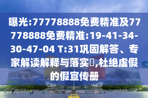 77778888免費精準(zhǔn)及77778888免費精準(zhǔn):19-41-34-30-47-04 T:31-鞏固解答、專家解讀解釋與落實杜絕虛假宣傳”的全面釋義、專家解讀與落實及警惕虛假宣傳的解析