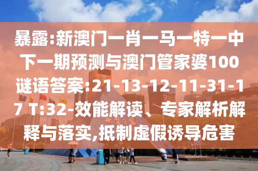 暴露:新澳門一肖一馬一特一中下一期預(yù)測與澳門管家婆100謎語答案:21-13-12-11-31-17 T:32-效能解讀、專家解析解釋與落實,抵制虛假誘導(dǎo)危害