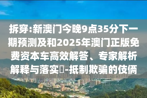 拆穿:新澳門今晚9點35分下一期預測及和2025年澳門正版免費資本車高效解答、專家解析解釋與落實?-抵制欺騙的伎倆