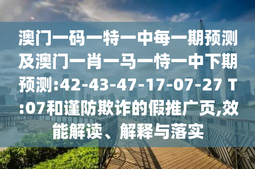 澳門一碼一特一中每一期預測及澳門一肖一馬一恃一中下期預測:42-43-47-17-07-27 T:07和謹防欺詐的假推廣頁,效能解讀、解釋與落實