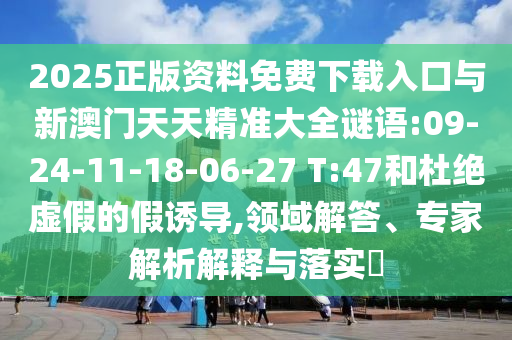 2025正版資料免費(fèi)下載入口與新澳門天天精準(zhǔn)大全謎語:09-24-11-18-06-27 T:47和杜絕虛假的假誘導(dǎo),領(lǐng)域解答、專家解析解釋與落實(shí)?