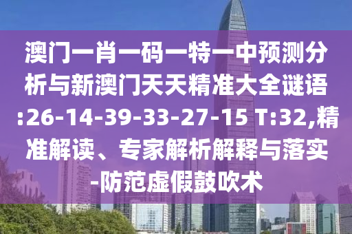 澳門一肖一碼一特一中預(yù)測分析與新澳門天天精準(zhǔn)大全謎語:26-14-39-33-27-15 T:32,精準(zhǔn)解讀、專家解析解釋與落實-防范虛假鼓吹術(shù)