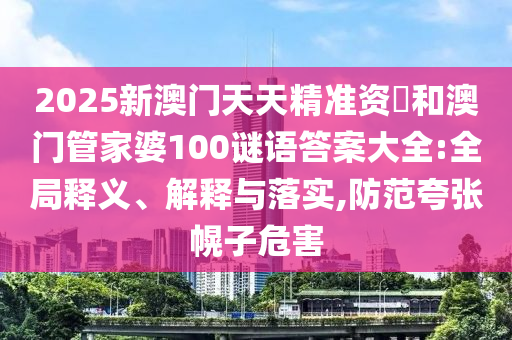 2025新澳門天天精準(zhǔn)資料”和“澳門管家婆100謎語(yǔ)答案大全”的全局釋義、解釋與落實(shí),以及防范夸張幌子危害的解析