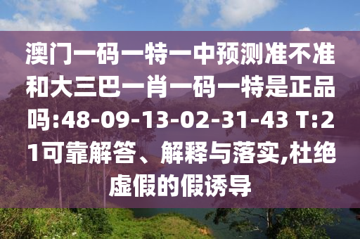 澳門一碼一特一中預(yù)測(cè)準(zhǔn)不準(zhǔn)和大三巴一肖一碼一特是正品嗎:48-09-13-02-31-43 T:21可靠解答、解釋與落實(shí),杜絕虛假的假誘導(dǎo)