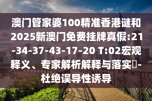 澳門管家婆100精準(zhǔn)香港謎和2025新澳門免費掛牌真假:21-34-37-43-17-20 T:02宏觀釋義、專家解析解釋與落實?-杜絕誤導(dǎo)性誘導(dǎo)