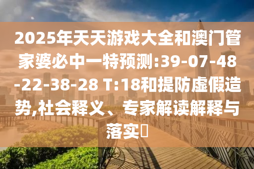 2025年天天游戲大全和澳門管家婆必中一特預(yù)測:39-07-48-22-38-28 T:18和提防虛假造勢,社會釋義、專家解讀解釋與落實(shí)?