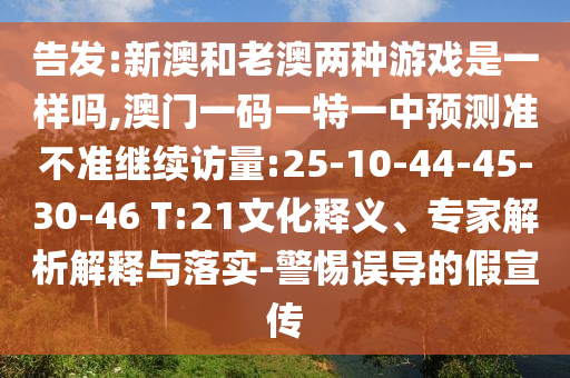 新澳和老澳兩種游戲是否一樣,澳門一碼一特一中預(yù)測(cè)準(zhǔn)不準(zhǔn)”的解析與警惕誤導(dǎo)的假宣傳