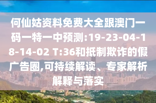 何仙姑資料免費(fèi)大全跟澳門一碼一特一中預(yù)測(cè):19-23-04-18-14-02 T:36和抵制欺詐的假廣告圈,可持續(xù)解讀、專家解析解釋與落實(shí)